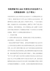 市***秘书长2025年度民主生活会的个人对照检查材料(五个带头)