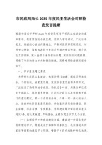 市民政局局长2025年度民主生活会对照检查发言提纲