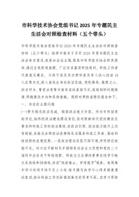 市科学技术协会党组书记2025年专题民主生活会对照检查材料(五个带头)