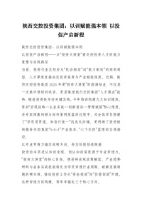 陕西交控投资集团:以训赋能强本领 以投促产启新程
