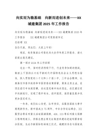 向实而为稳基础向新而进创未来——XX城建集团2025年工作报告