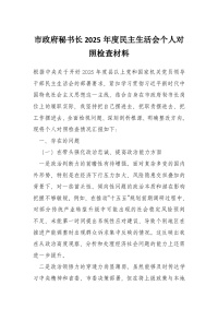 XX市政务服务和大数据局党组书记、局长2025年度民主生活会对照检查材料