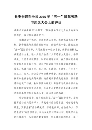 县委书记在全县2026年“五一”国际劳动节纪念大会上的讲话
