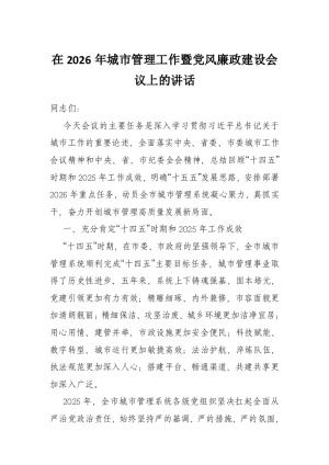在2026年城市管理工作暨党风廉政建设会议上的讲话