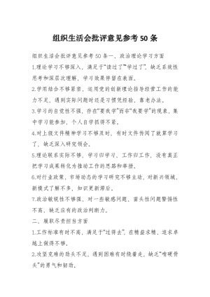 组织生活会批评意见参考50条