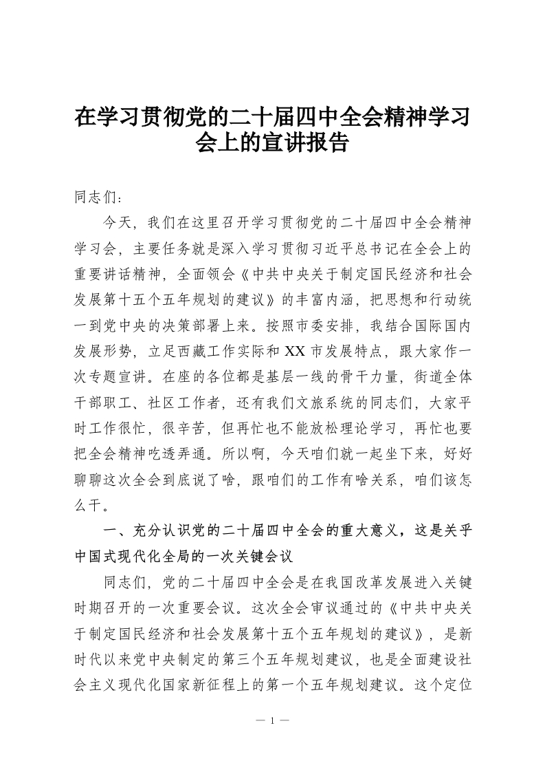 在学习贯彻党的二十届四中***精神学习会上的宣讲报告