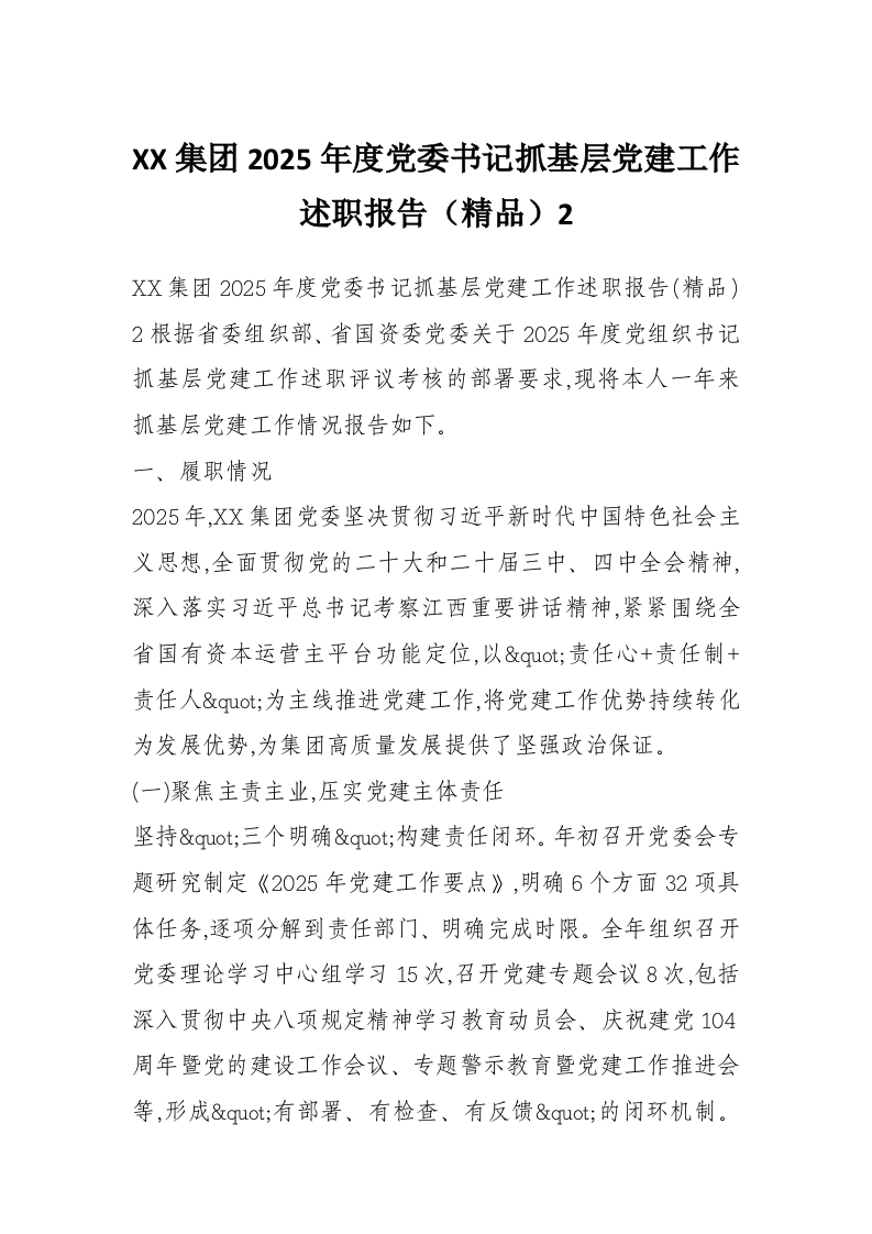 XX集团2025年度党委书记抓基层党建工作述职报告(精品)2