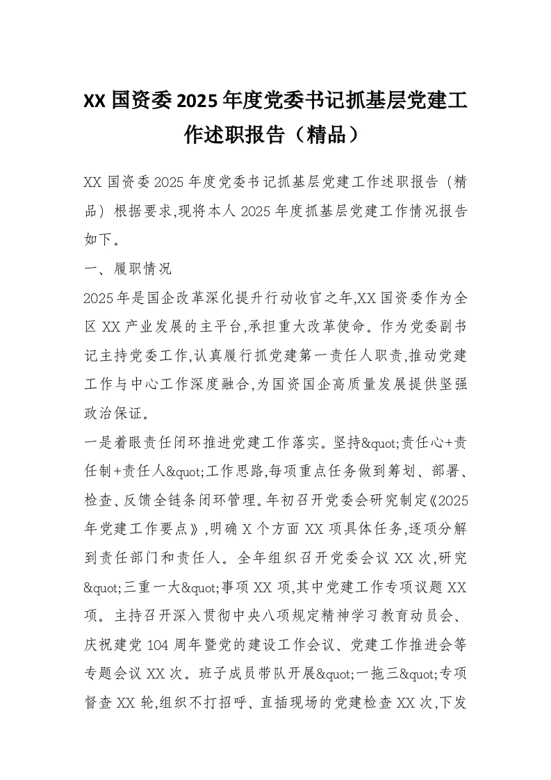 XX国资委2025年度党委书记抓基层党建工作述职报告(精品)