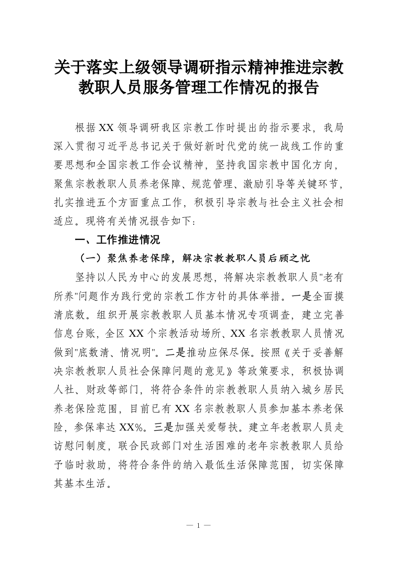 关于落实上级领导调研指示精神推进宗教教职人员服务管理工作情况的报告