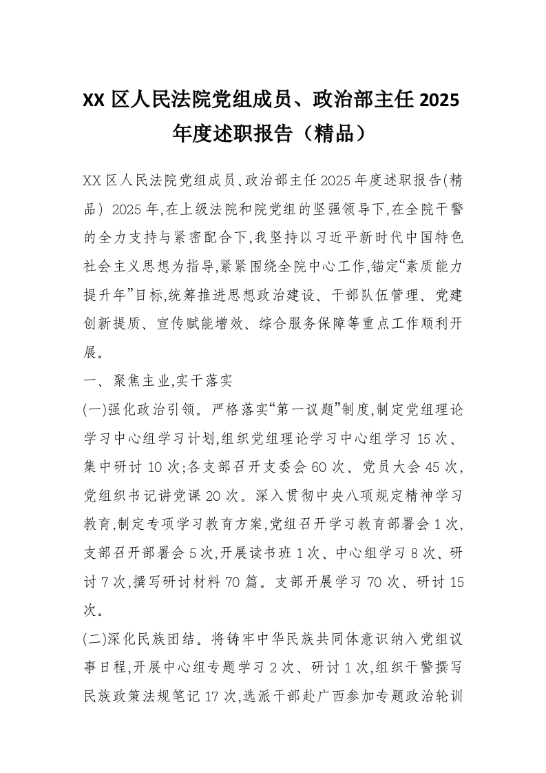 XX区人民法院党组成员、政治部主任2025年度述职报告(精品)