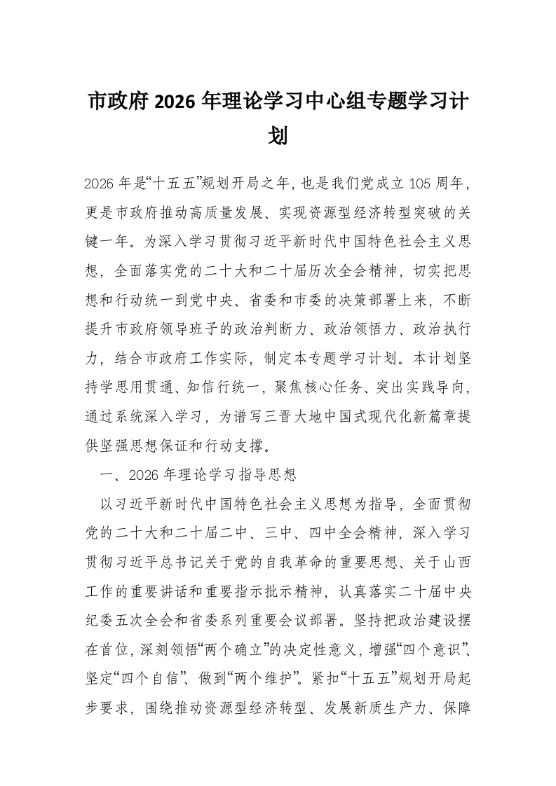 市***2026年理论学习中心组专题学习计划