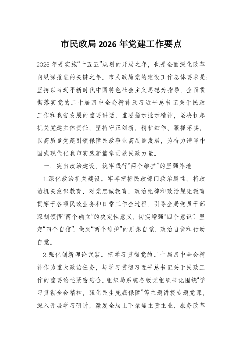 首页讲课讲稿市民政局2026年党建工作要点