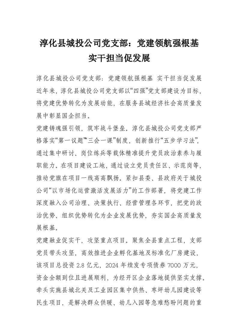 首页写作素材淳化县城投公司党支部:党建领航强根基 实干担当促发展