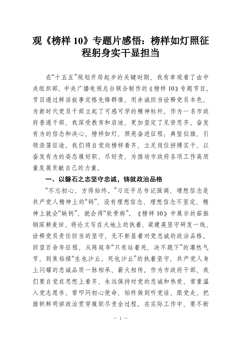 首页工作文档观《榜样10》专题片感悟:榜样如灯照征程躬身实干显担当