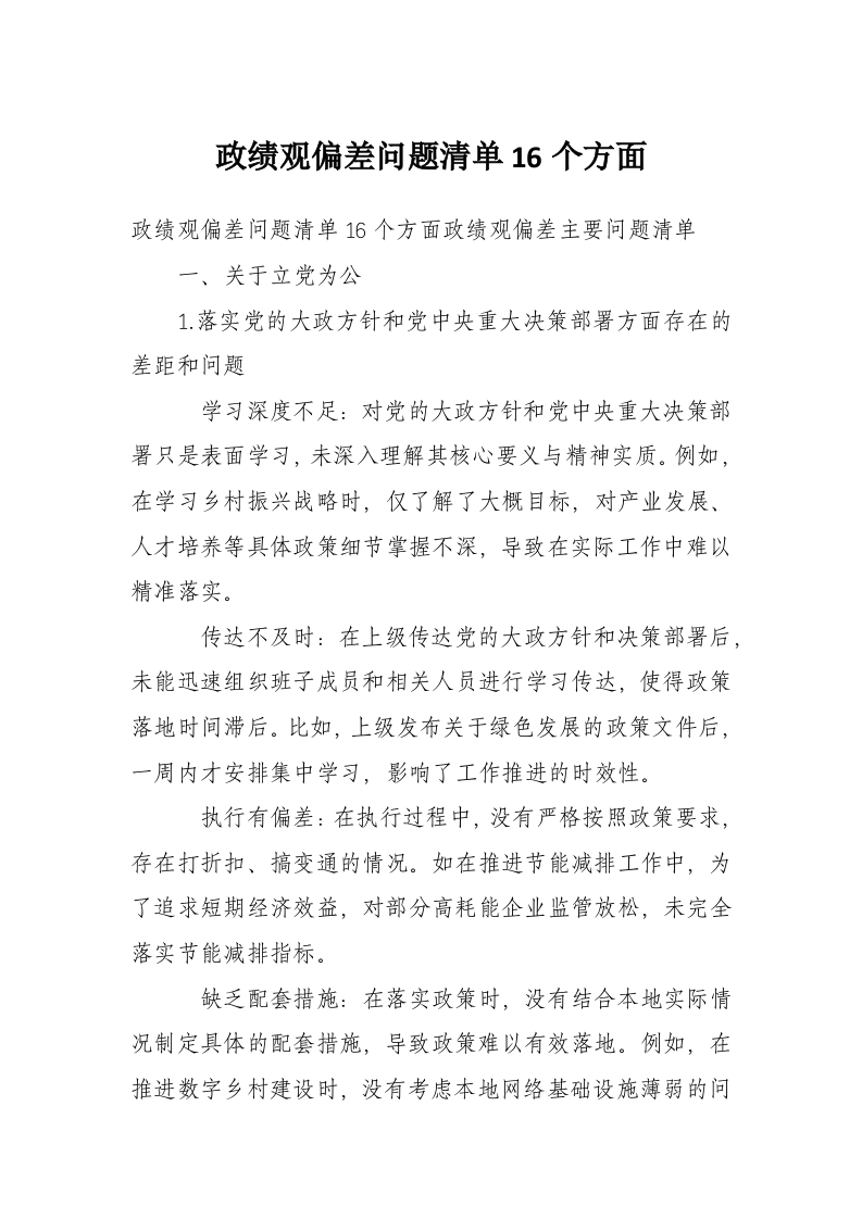 政绩观偏差问题清单16个方面