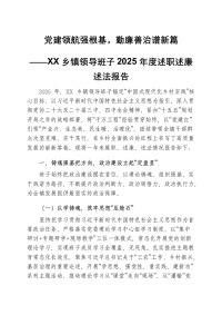 XX乡镇领导班子2025年度述职述廉述法报告:党建领航强根基,勤廉善治谱新篇